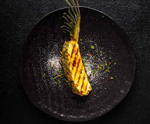 Del ananasen i kløfter. Grill ananasen over middels høy varme til den