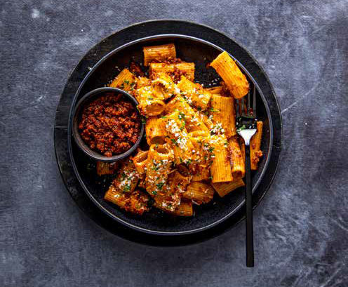 Kok pastaen «al dente». Hell av kokevannet, ha pastaen tilbake i gryta og rør inn arrabiata-sausen. Fordel pastaen på tallerkener og dryss over revet parmesan og litt hakket persille eller basilikum hvis ønskelig.