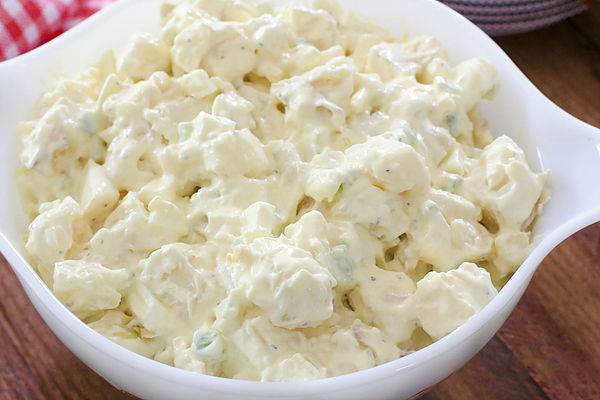 Potetsalaten lager du enkelt. Kok opp 5-7 nypoteter eller Amandine poteter. Når potetene er ferdige deler du dem i biter. I tillegg trenger du 1 pakke lettrømme, Mills lettmajones (bruk en dobbelpakke i eske), 1 finhakket gul løk, 8.10 finhakkede Stabburets Parisergurker + 3 ts av safen fra glasset, 4 ss Iduns grov sennep. Alt blandes sammen før servering.