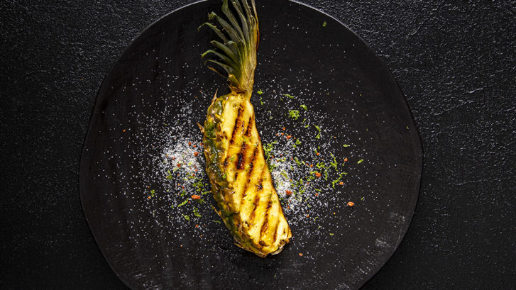 Smelt sukkeret til gyllen karamell i en stekepanne og rør inn nøttene. Hell det utover et stykke bakepapir og la krokanen bli helt avkjølt før du hakket den opp. Visp sammen alle vaff elingrediensene til en jevn og glatt røre. La røren svelle minst en halv time og stek gylne vafler. Server nystekte vafler med is, dryss over krokan, en liten stråle mango eddik og sjokoladesaus.